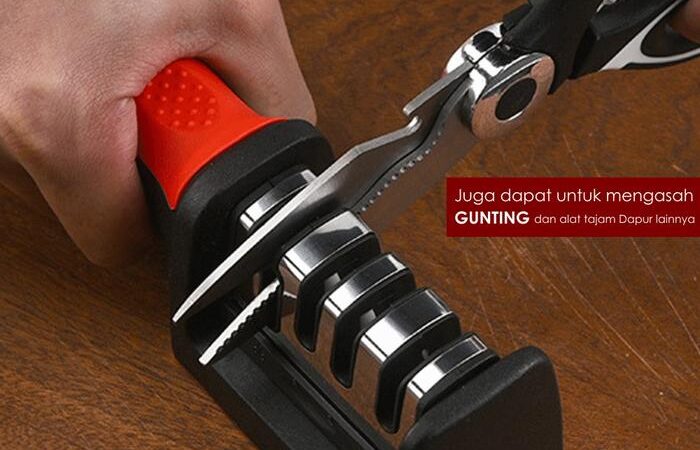 | Aplikasi & Kompatibilitas | Cocok untuk berbagai jenis pisau seperti pisau dapur stainless steel, pisau buah, pisau koki, dan gunting rumah tangga dengan mata pisau bevel ganda. |