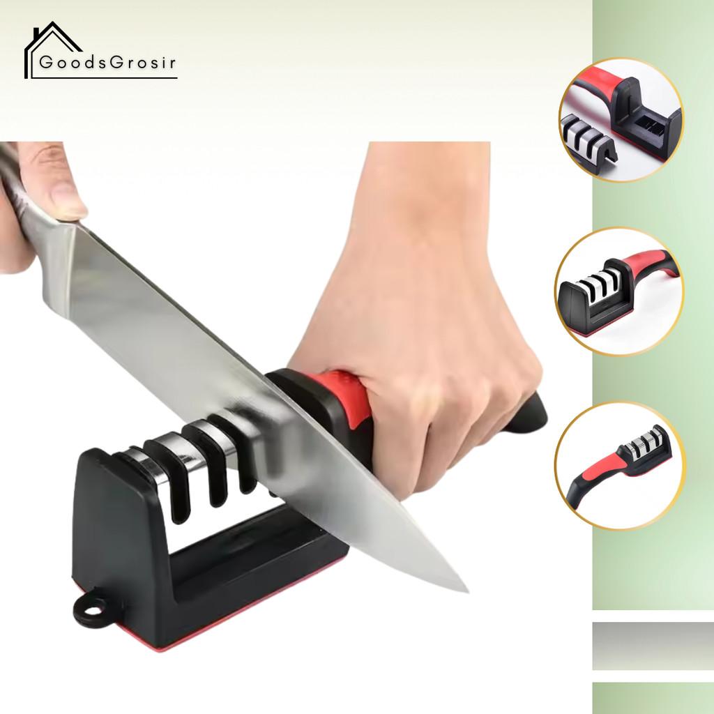 | Aplikasi & Kompatibilitas | Cocok untuk berbagai jenis pisau seperti pisau dapur stainless steel, pisau buah, pisau koki, dan gunting rumah tangga dengan mata pisau bevel ganda. |