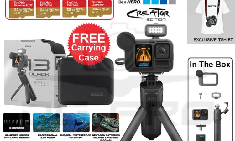 Temukan kreativitas tanpa batas dengan GoPro HERO13 Black Creator Edition. Kamera action terbaru ini dirancang khusus untuk para kreator yang menuntut kualitas cinematic dan kemudahan penggunaan. Dilengkapi dengan sensor 27MP yang menghasilkan video 5.3K60, 4K120, dan foto beresolusi tinggi. Stabilisasi HyperSmooth 6.0 menjamin rekaman tetap mulus bahkan dalam kondisi ekstrem. Fitur unggulan lainnya termasuk layar depan dan belakang, tahan air hingga 33 kaki tanpa housing, dan konektivitas Bluetooth untuk kontrol audio.