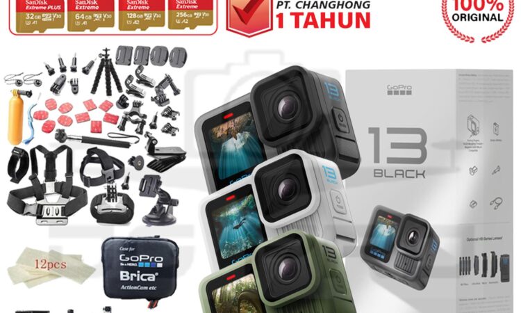 Head Strap, Chest Mount, Floating Grip, Suction Cup, Mini Tripod, 3-Way Monopod, Housing Waterproof, Tas GoPro, Memory Card, Anti Fog Insert, Tempered Glass, dan puluhan mount & aksesori pendukung lainnya.