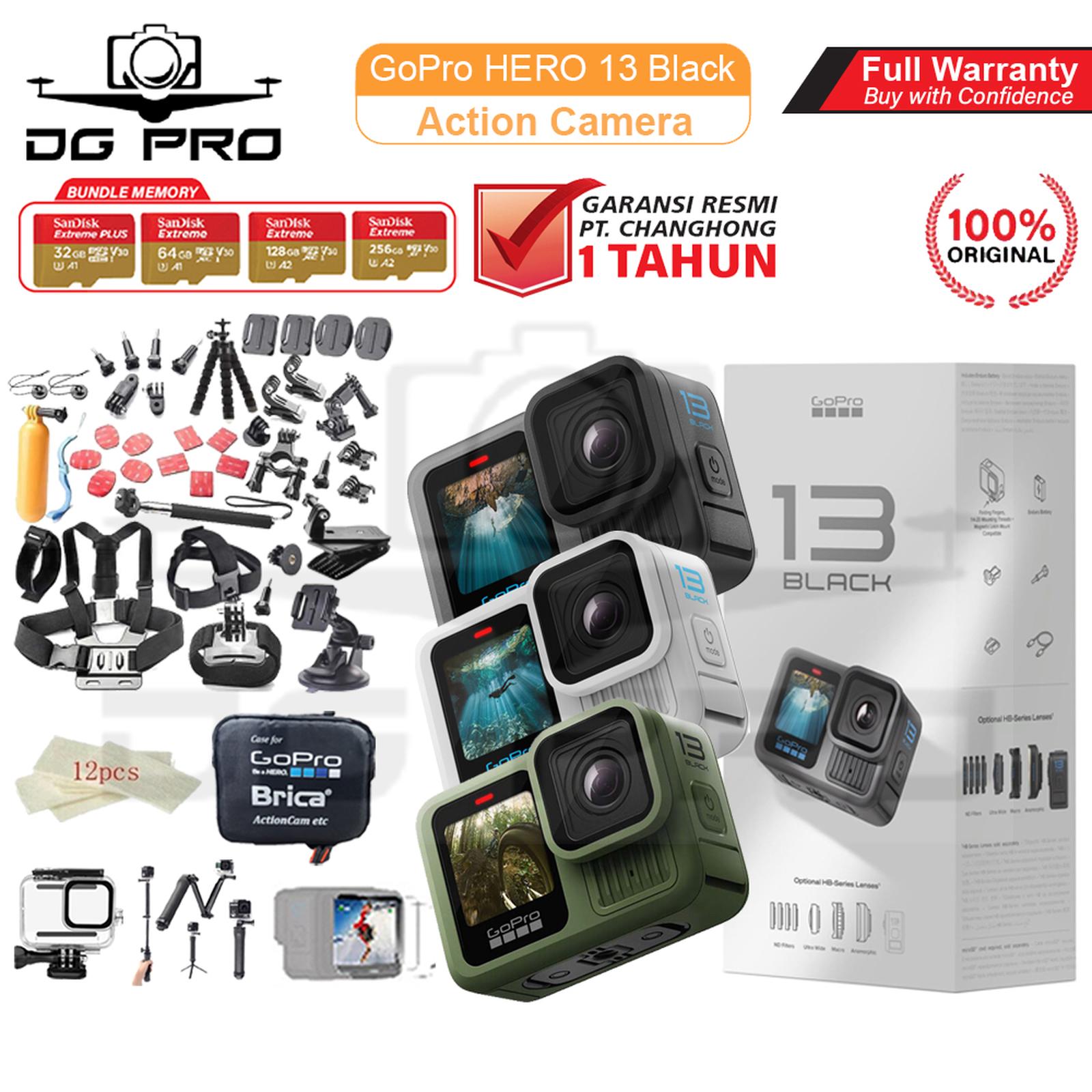 Head Strap, Chest Mount, Floating Grip, Suction Cup, Mini Tripod, 3-Way Monopod, Housing Waterproof, Tas GoPro, Memory Card, Anti Fog Insert, Tempered Glass, dan puluhan mount & aksesori pendukung lainnya.