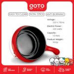Temukan kemudahan memasak tanpa batas dengan GOTO Electric Minipan Ganjang! Perangkat serbaguna ini dirancang untuk memenuhi segala kebutuhan dapur Anda, mulai dari menggoreng, menumis, merebus, mengukus, hingga sekadar menghangatkan makanan. Dengan lapisan anti lengket premium, memasak jadi lebih sehat dengan minyak minimal dan proses pembersihan yang sangat mudah. Desainnya yang ringkas dan portabel menjadikannya solusi sempurna untuk dapur kecil, anak kos, atau bahkan menemani perjalanan Anda.