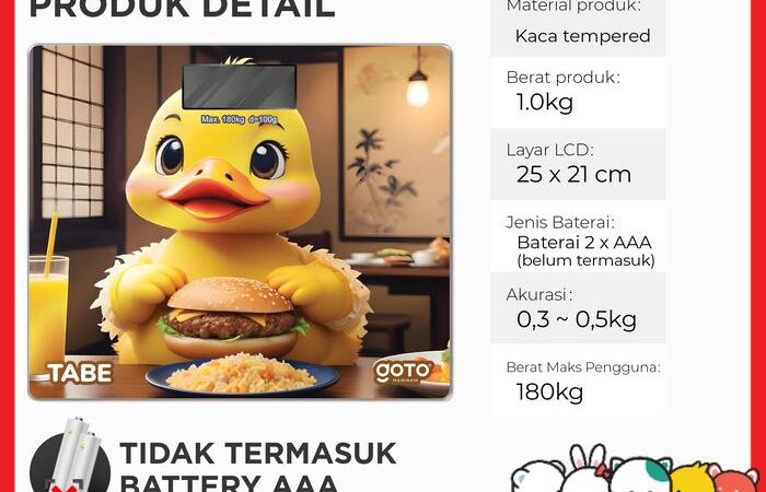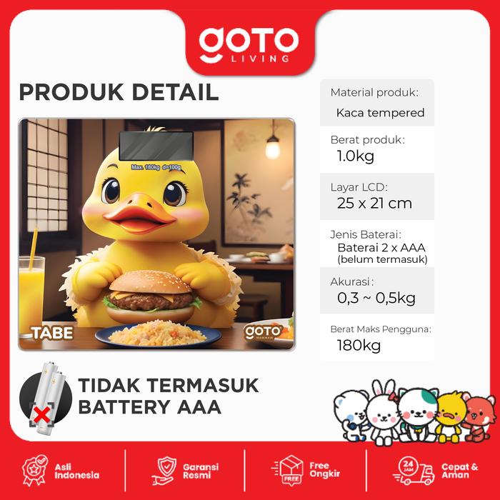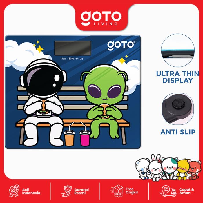 Timbangan digital dengan desain karakter lucu yang membuat aktivitas menimbang berat badan jadi lebih menyenangkan! GOTO Body Scale tidak hanya akurat tetapi juga mempercantik ruangan dengan pilihan gambar yang beragam. Cocok untuk keluarga, anak-anak, atau siapa pun yang ingin memulai hidup sehat dengan cara yang fun!