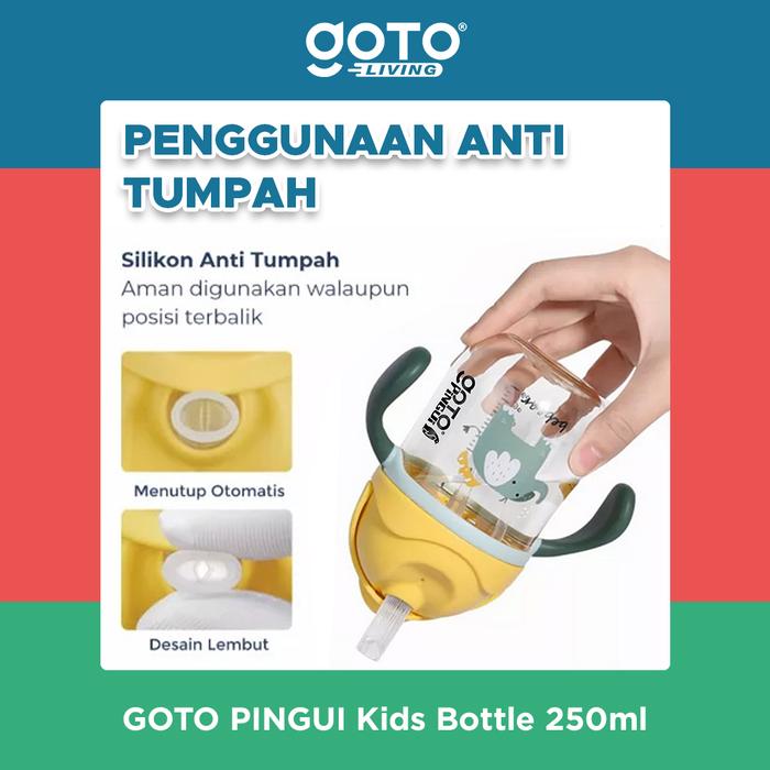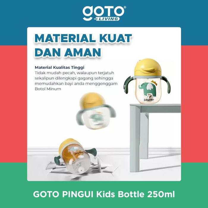 Cari botol minum praktis untuk melatih si kecil minum mandiri? GOTO Pingui Kids Bottle solusinya! Terbuat dari bahan BPA Free, dilengkapi sedotan lucu dan desain ergonomis untuk kenyamanan batita.
