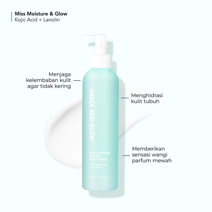 | Miss Moisture & Glow Solution Body Serum | Melembapkan & mencerahkan | Kojic Acid + Lanolin |