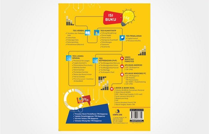 Buku ini berisi 2.338 soal latihan (drilling) lengkap dengan pembahasan mendetail, 57 topik pendalaman materi, dan 51 paket soal simulasi. Pelajari teknik pangkas waktu, tips & trik jitu, serta kuasai semua jenis tes: Verbal, Kuantitatif, Penalaran, Logika Spasial, dan Tes Kepribadian (PnP).