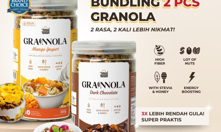 Rasakan kenikmatan granola premium dengan cita rasa khas Timur Tengah. Paket bundling ini berisi 2 pilihan varian lezat yang bisa Anda campur sesuai selera. Dengan 500gr per kemasan, Grainnola adalah sumber serat tinggi, rendah kalori, dan praktis untuk sarapan sehat, camilan sehari-hari, atau pendamping yogurt dan smooth bowl.