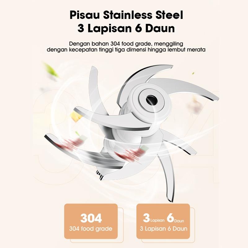 Rasakan kemudahan mengolah makanan dengan Samono Mini Chopper! Blender elektrik portabel ini dilengkapi 6 mata pisau stainless steel berkualitas tinggi untuk hasil gilingan super halus dalam hitungan detik. Cocok untuk MPASI, daging, sayuran, atau bumbu dapur.