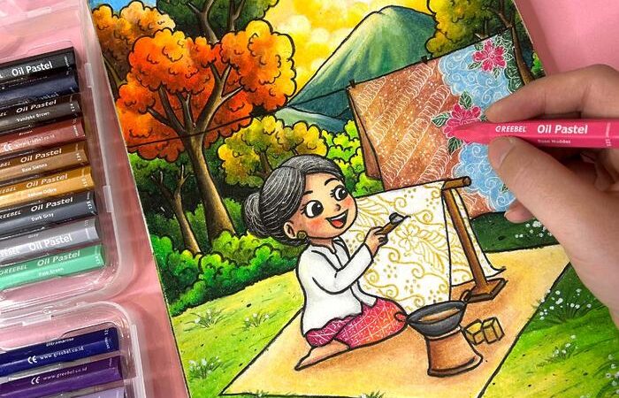 - Scraping: Teknik mengukir atau menggores lapisan oil pastel untuk menampakkan warna di bawahnya.