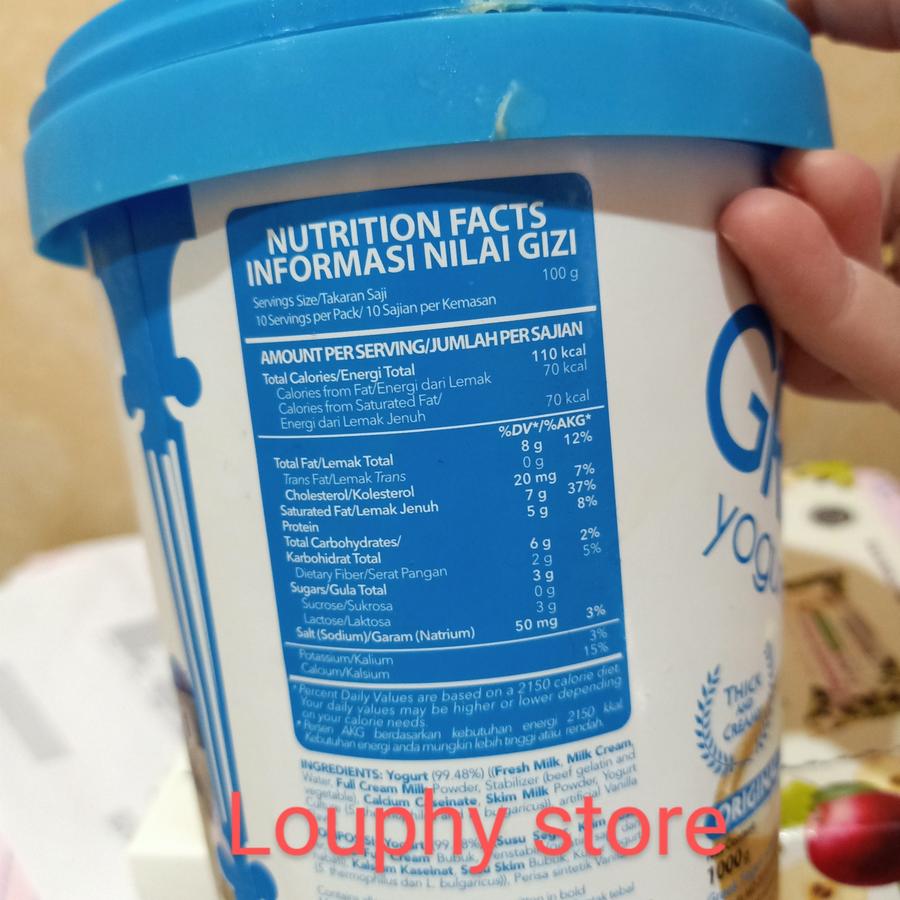 | Pengiriman | Disarankan menggunakan pengiriman instan karena Greek Yogurt rentan rusak jika tidak dingin |