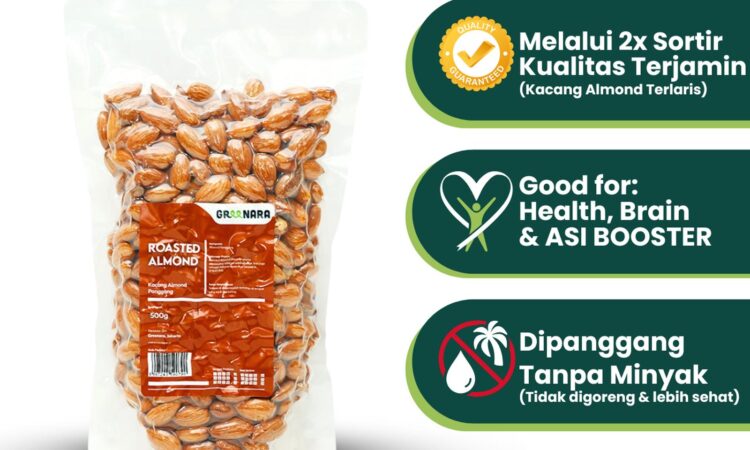 Kaya akan vitamin E, protein, serat, dan lemak sehat, almond panggang ini baik untuk jantung, otak, dan membantu mengontrol gula darah serta kolesterol. Konsumsi langsung sebagai camilan atau tambahkan ke dalam salad, oatmeal, atau yoghurt.