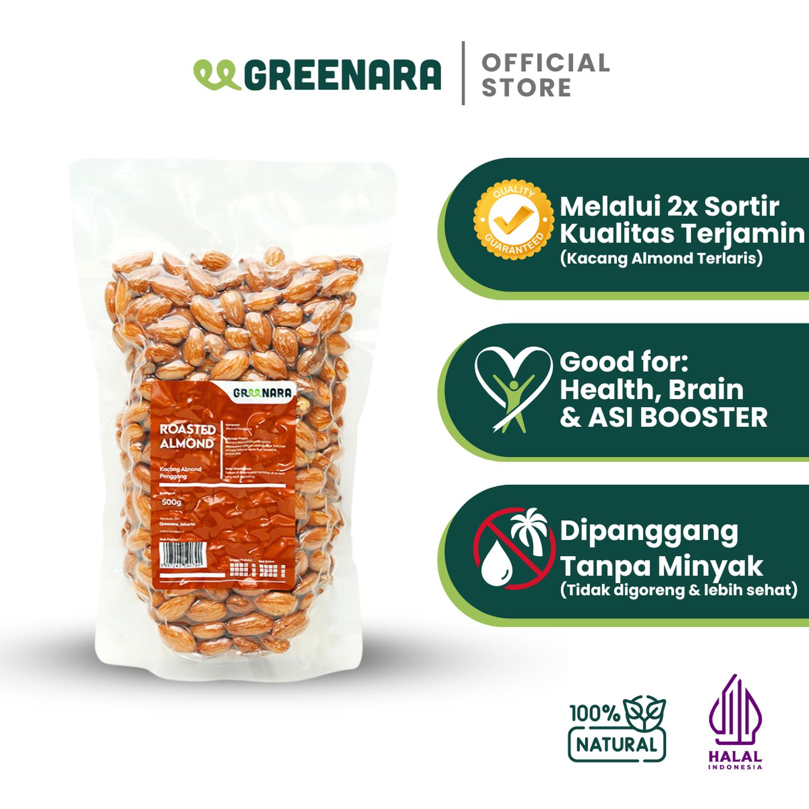 Nikmati camilan sehat berkualitas tinggi dengan Greenara Natural Roasted Almond. Diproduksi tanpa pengawet, pewarna, perasa, atau pemanis buatan, kacang almond ini dipanggang secara sempurna untuk mempertahankan rasa alami dan nutrisinya. Dikemas dalam kemasan vacuum yang menjaga kesegaran dan kerenyahan.
