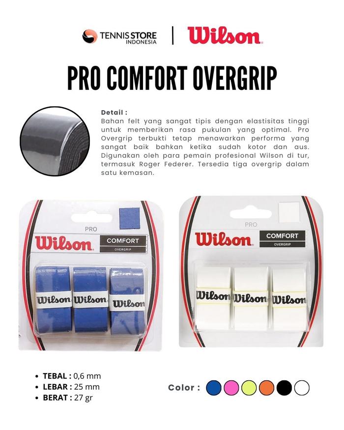 Dapatkan performa terbaik seperti atlet profesional dengan Grip Tenis Wilson Pro Comfort Overgrip Original!