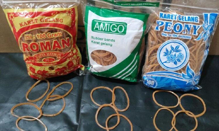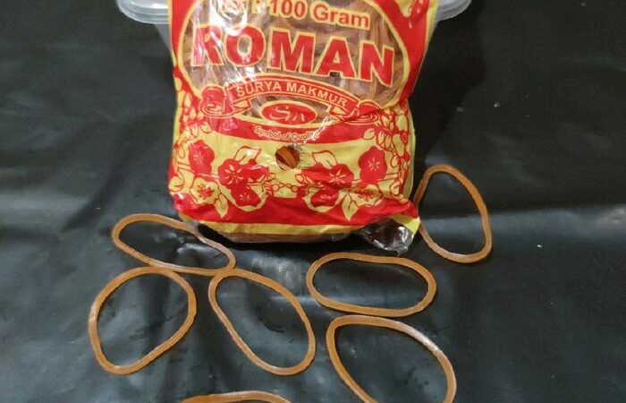 | Roman | 100 gram | ± 105 pcs | Karet alami, diameter ±4 cm | Kuning cerah |