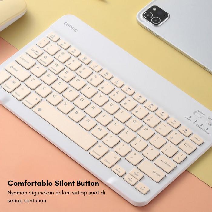Kesempurnaan produktivitas kini ada di genggaman Anda dengan GROTIC Keyboard Wireless Bluetooth! Desain ringkas 10 inci, portabel, dan mendukung multi-sistem (iOS, Android, Windows). Dilengkapi mouse ergonomis dengan fitur canggih untuk kebutuhan kerja atau hiburan Anda.