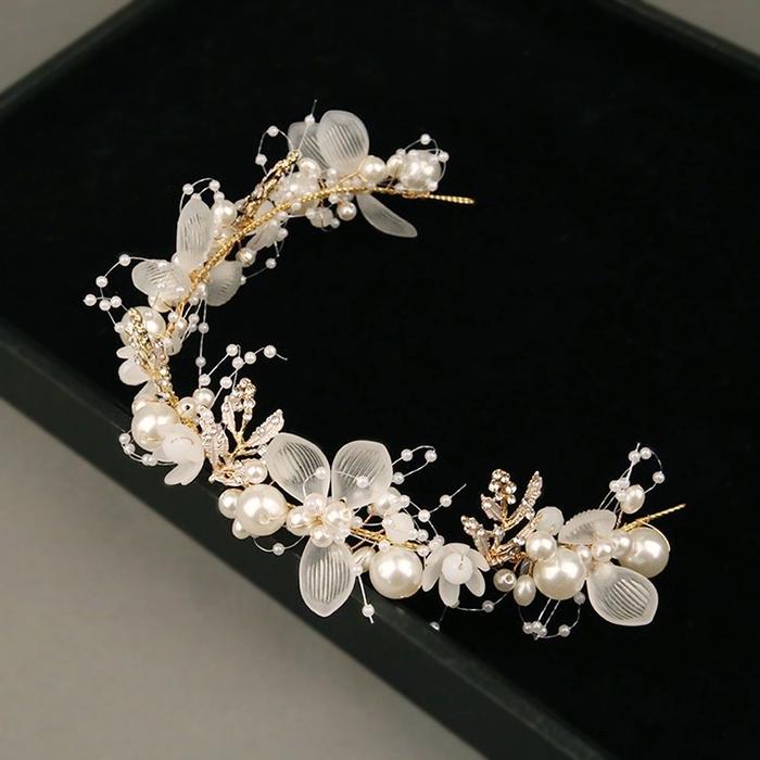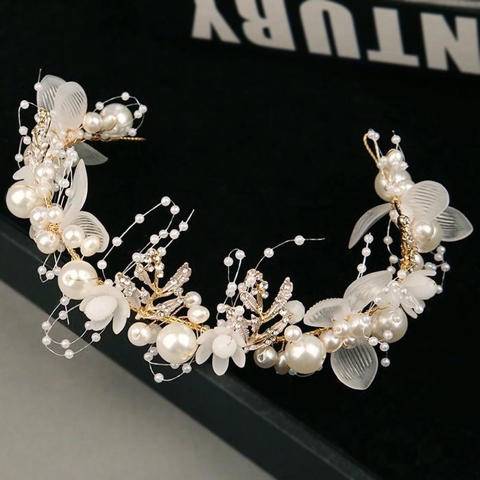 | Material | Kombinasi mutiara, bunga artifisial, dan pita lembut untuk tampilan elegan. |