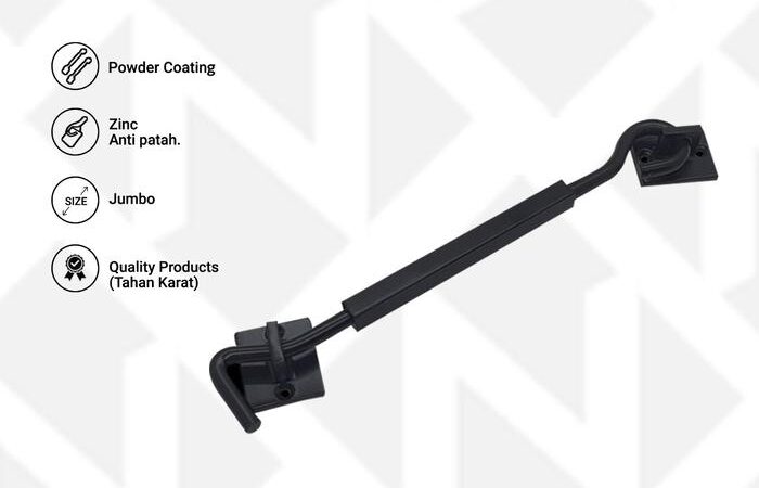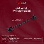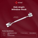 Dengan panjang gagang 8 inci (200mm), hak angin ini memberikan fleksibilitas untuk menahan berbagai bukaan jendela kayu. Fungsi utamanya adalah mengunci jendela pada posisi yang diinginkan, mencegahnya tertutup atau terbuka akibat angin.