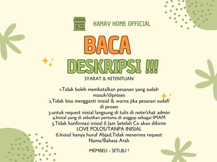 - Cantumkan inisial nama dengan jelas dan benar (contoh: Imam A, Makmum B). Satu sajadah hanya untuk satu huruf inisial. Tidak menerima nama panjang, panggilan, atau tulisan Arab.