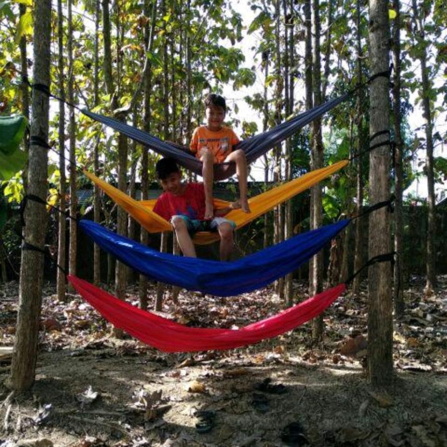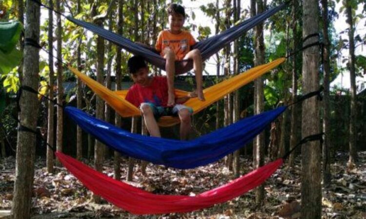 - Bahan Pellisik: Kain sintetis anyaman rapat, dikenal tahan lama dan cepat kering. Ideal untuk hammock outdoor.