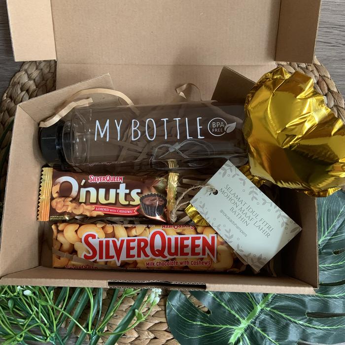 | Kemasan Premium | Box ukuran ±24x14x8 cm, dilengkapi balon foil mini (10cm), tali rami alami, dan kartu ucapan. |