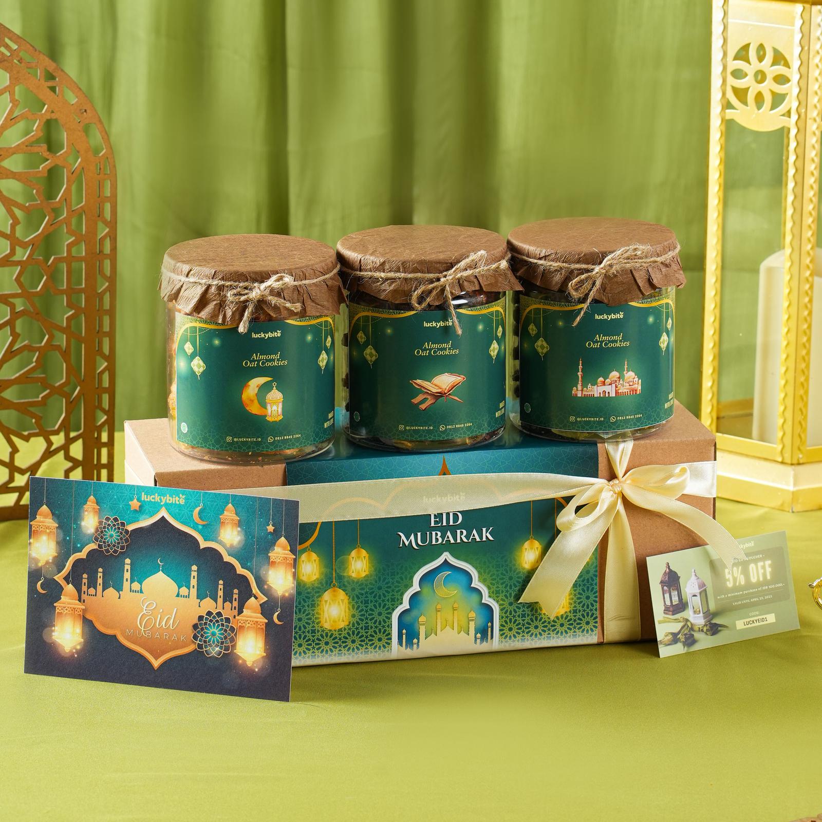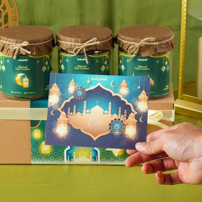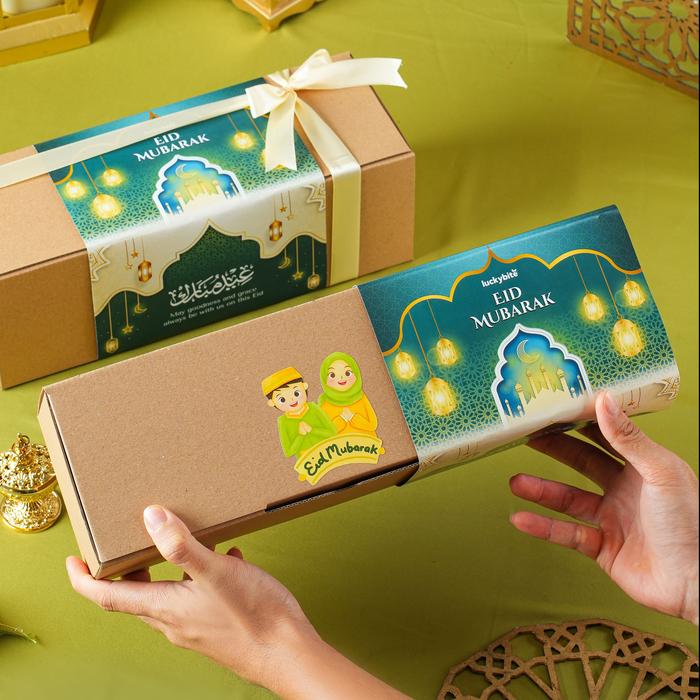 - Eid Sleeves: Sampul atau kemasan tambahan yang sering digunakan untuk membungkus kotak hampers, biasanya bertema Lebaran dengan warna-warna elegan dan tulisan ucapan selamat.