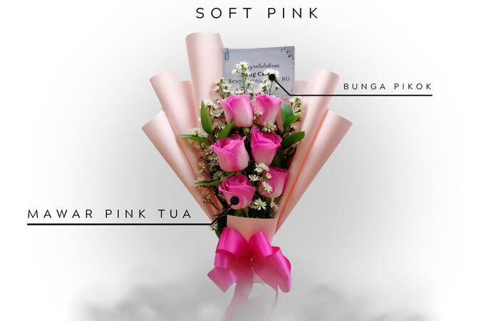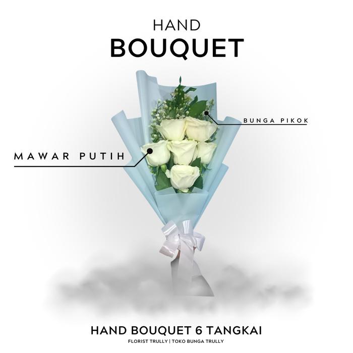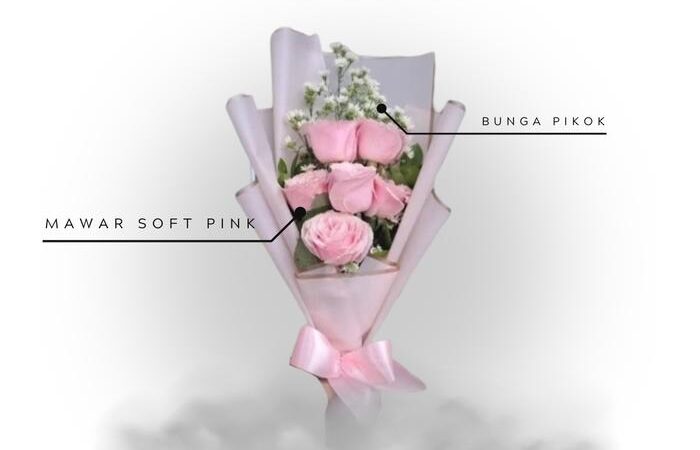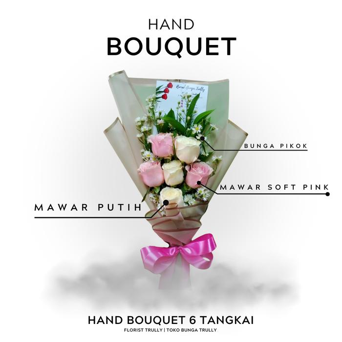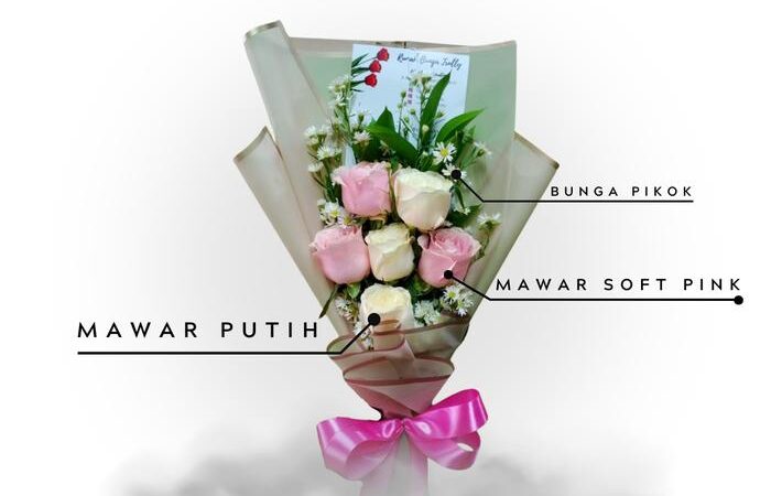| Jenis Bunga | Mawar segar/asli (pilihan warna: putih atau soft pink) – 6 tangkai |