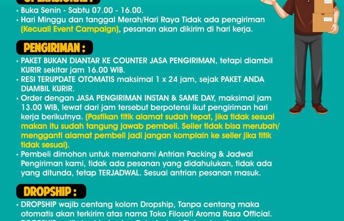 - Reguler & Ekonomi: Pesan sebelum jam 12.00 (Senin-Sabtu) akan dikirim hari yang sama.