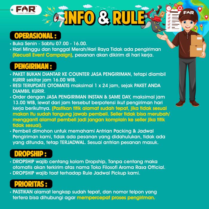 - Dilarang meminta variasi wangi lain melalui catatan pesanan atau chat. NO COMPLAIN.