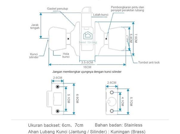 - Backset: Jarak dari tepi pintu ke titik tengah as lubang tempat dudukan kunci dipasang. Pengukuran ini sangat krusial untuk memastikan handle dan kunci dapat terpasang dengan sempurna pada pintu Anda.