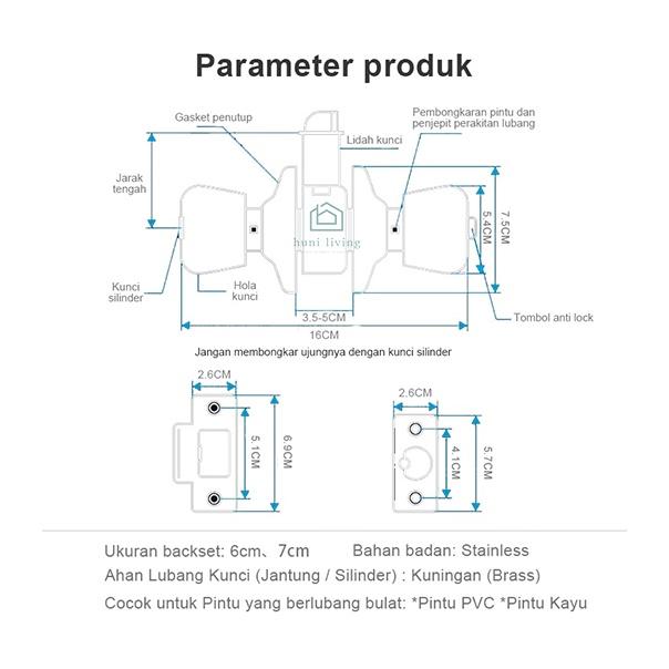 | Ukuran Backset Tersedia | 60 mm dan 70 mm |