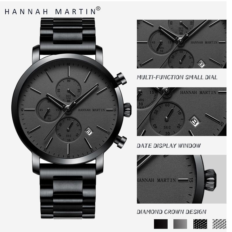 Jam tangan pria Hannah Martin menggabungkan gaya estetik dengan kualitas tinggi. Dibekali fitur kronograf dan tahan air, jam ini cocok untuk aktivitas sehari-hari maupun acara khusus. Berbahan strap stainless steel dengan bobot 109g, nyaman dipakai seharian.