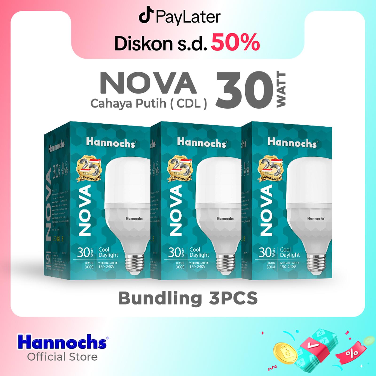 Tingkatkan kualitas pencahayaan ruangan Anda dengan Hannochs LED Nova. Bohlam ini memberikan terang maksimal hingga 3000 Lumen dengan cahaya putih terang (6500K), sempurna untuk area yang membutuhkan iluminasi kuat seperti garasi, gudang, atau teras. Paket berisi 3 bohlam memberikan nilai ekonomis terbaik untuk kebutuhan seluruh rumah.