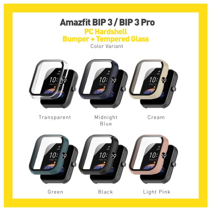 1 x Hard Case PC Bumper 2in1 dengan Tempered Glass Screen Protector untuk Amazfit Bip 3 / Bip 3 Pro