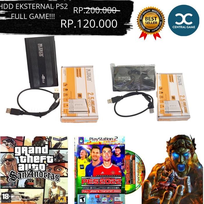 HDD PS2 Eksternal: Hard disk eksternal khusus PlayStation 2 yang berisi kumpulan game siap pakai.