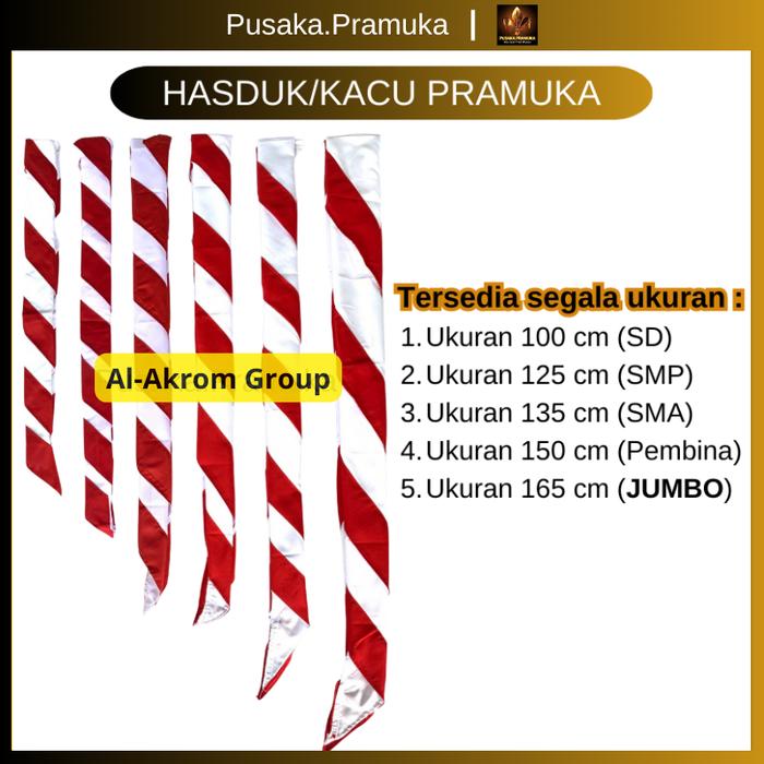 Tampil percaya diri dan nyaman dalam setiap kegiatan Pramuka dengan Hasduk/Kacu merah putih kami. Terbuat dari bahan katun pilihan yang halus, lembut, dan tidak licin, sehingga nyaman dipakai dalam waktu lama dan tidak mudah membuat iritasi pada kulit. Produk ini dirancang khusus untuk seluruh tingkatan, mulai dari Siaga, Penggalang, Penegak, hingga Pembina.
