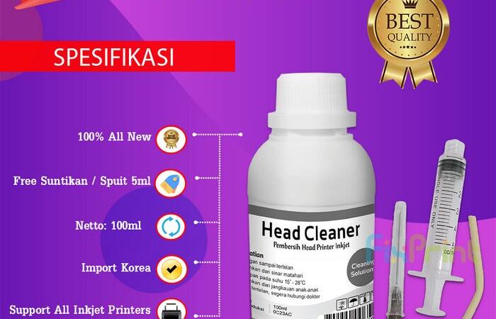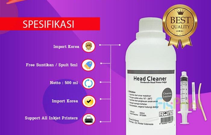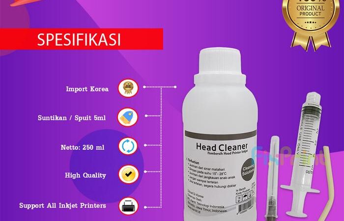 Solusi tepat untuk mengatasi semua masalah printer inkjet Anda. Head Cleaner Premium kami adalah cairan pembersih import berkualitas tinggi dari Korea yang dirancang khusus untuk melarutkan tinta yang mengering dan menyumbat pada head cartridge.