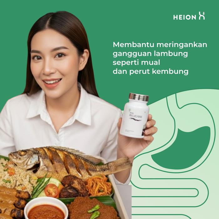 Tuntutan aktivitas yang padat seringkali membuat pola makan tidak teratur, memicu gangguan lambung seperti mual, perut kembung, dan GERD. Heion Relicare hadir dengan formula alami 500mg yang terdaftar BPOM TR233052701 dan bersertifikat HALAL, siap menjadi solusi terpercaya untuk keluhan lambung Anda.