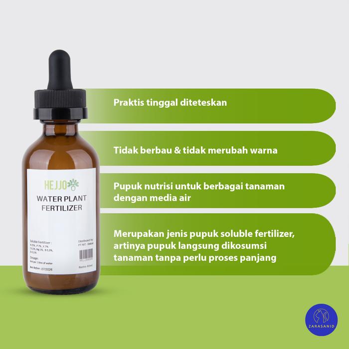 Dirancang khusus untuk tanaman hidroponik dan akuatik, HEJJO memberikan nutrisi esensial yang dibutuhkan untuk pertumbuhan optimal. Formula cairnya yang terkonsentrasi mudah diserap oleh tanaman, mendukung perkembangan akar yang kuat, daun yang hijau, serta mendorong pembungaan. Cocok untuk semua jenis tanaman air seperti anubias, eceng gondok, lidah mertua air, dan teratai.