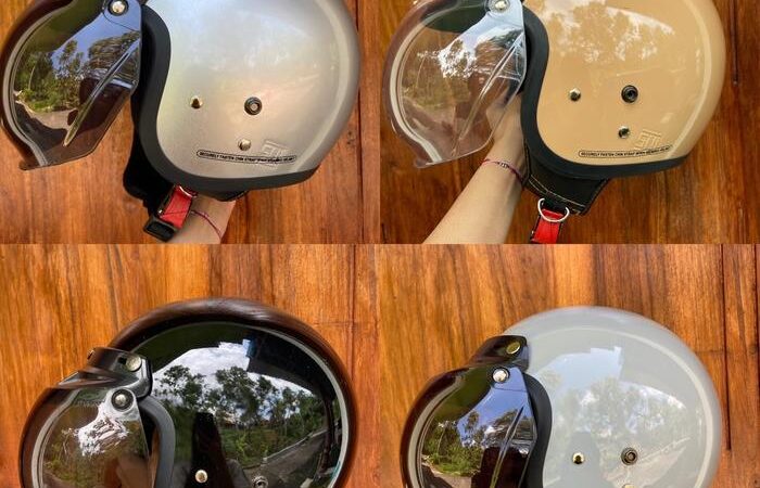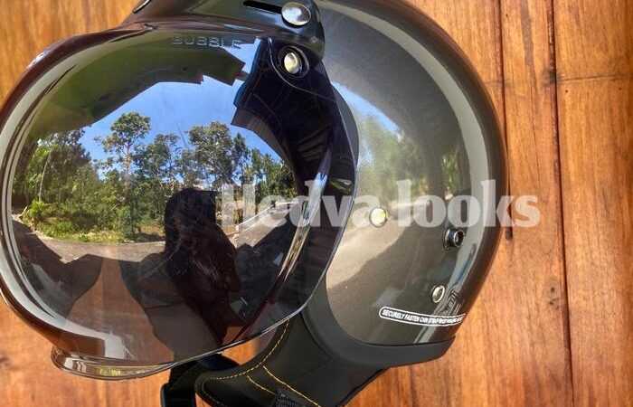 - Helm Bogo: Helm half-face dengan desain retro dan kaca datar, populer untuk penggunaan sehari-hari.