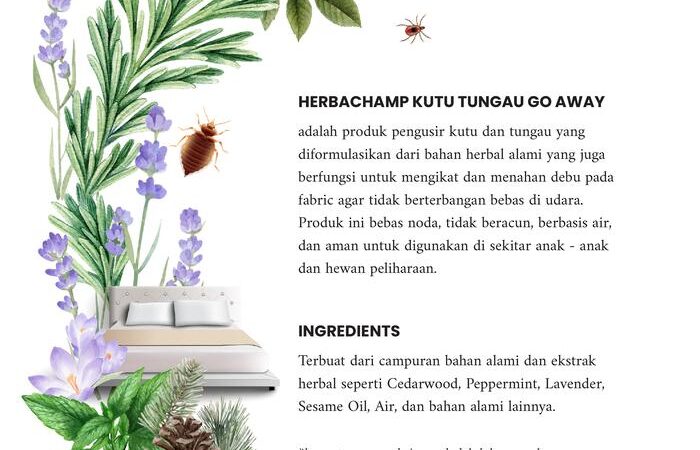 Lindungi rumah Anda dari kutu dan tungau dengan solusi alami yang efektif dan aman. Herbachamp Kutu Tungau Go Away diformulasikan khusus dari ekstrak tumbuhan pilihan untuk mengusir hama secara alami tanpa membahayakan keluarga tercinta. Selain mengusir kutu, produk ini juga berfungsi mengikat dan menahan debu pada permukaan kain, mencegahnya beterbangan di udara sehingga udara di rumah lebih bersih dan sehat. Aman digunakan di sekitar anak-anak dan hewan peliharaan.