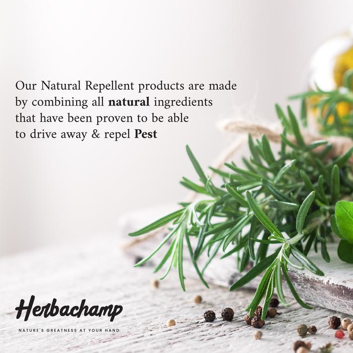 Semua produk Herbachamp bebas dari alkohol, DEET, racun pestisida, pengharum buatan, dan bahan kimia berbahaya.