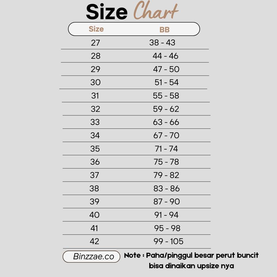 | Size | Lingkar Pinggang (cm) | Lingkar Paha (cm) | Panjang Celana (cm ±1-3 cm) |