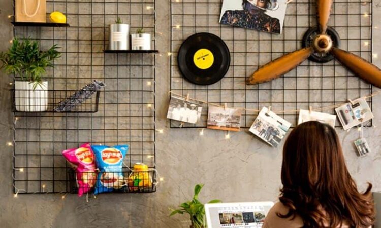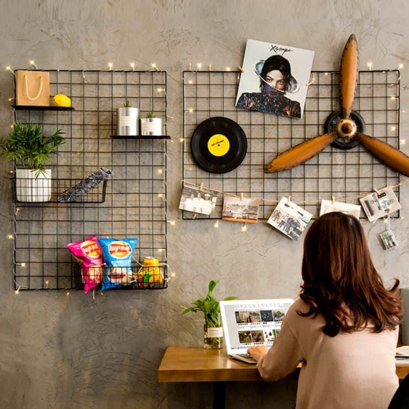 - Grid Wire Mesh: Panel kawat berlubang berbentuk persegi, berfungsi sebagai organizer/pameran item dengan gaya modern.