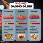 | Daging Giling Regular | 10-20% | Ideal untuk burger patty, bakso, dan bola-bola daging. Teksturnya juicy dan gurih. |