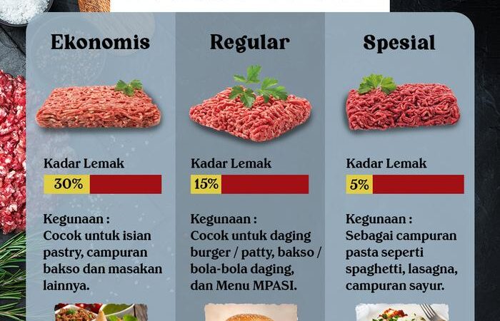 | Daging Giling Ekonomis | 30% | Cocok untuk isian pastry, campuran bakso, dan berbagai masakan dengan budget terjangkau. |