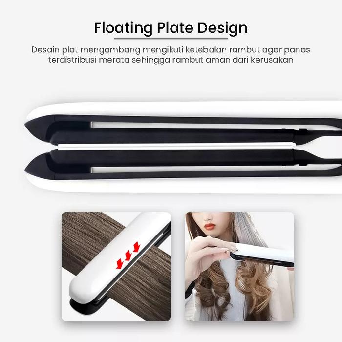 | Fitur Unggulan | Floating Plate, Ceramic Tourmaline Coating, 360° Cord, Super Fast Heat, 2-in-1 Function |