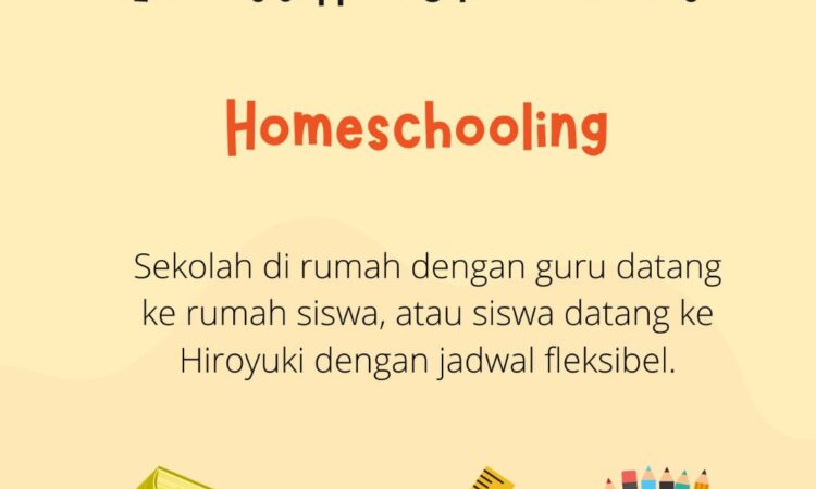 Beri anak pengalaman belajar nyaman, fleksibel, dan efektif di rumah dengan program homeschooling online & offline dari Hiroyuki Education. 💡