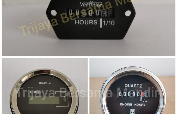 • Hour Meter: Sebuah instrument yang berfungsi untuk mengukur dan mencatat total waktu operasional sebuah mesin atau peralatan, biasanya dalam satuan jam. Data ini menjadi dasar penting untuk perhitungan jadwal servis periodik, seperti ganti oli dan tune-up, guna mencegah kerusakan mesin yang tidak terduga.
