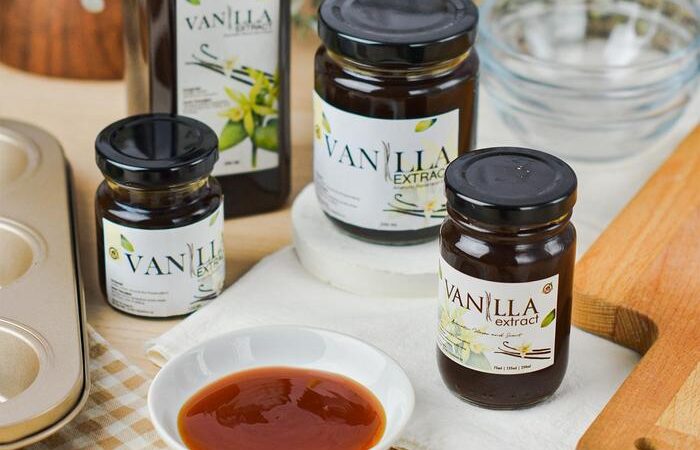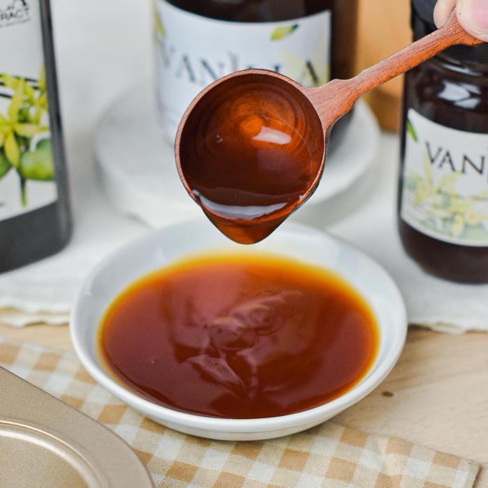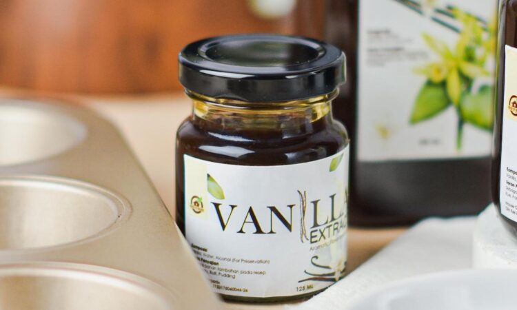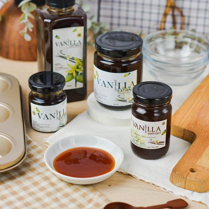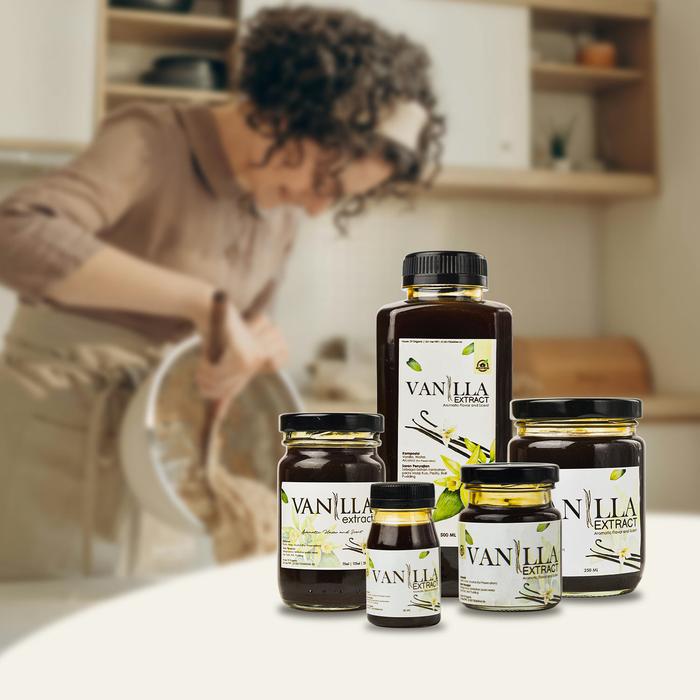 Ekstrak Vanila Alami (Natural Vanilla Extract): Cairan yang dihasilkan dari proses perendaman dan penyarian buah vanila (vanilla bean) dalam larutan alkohol dan air. Berbeda dengan essense atau perisa vanila buatan, ekstrak alami berasal langsung dari bahan tumbuhan asli sehingga memberikan rasa dan aroma yang lebih kompleks, halus, dan autentik.