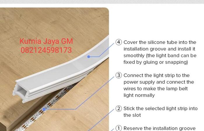 - Housing LED Strip: Selubung atau pelindung yang berfungsi sebagai tempat untuk memasang lampu LED strip. Housing melindungi komponen elektronik dari gangguan fisik dan membuat penyebaran cahaya lebih tersebar merata.
